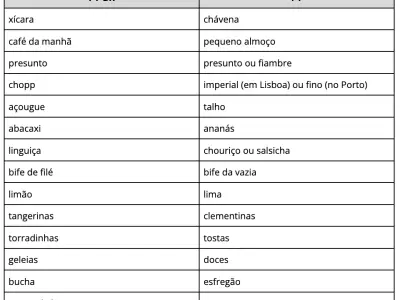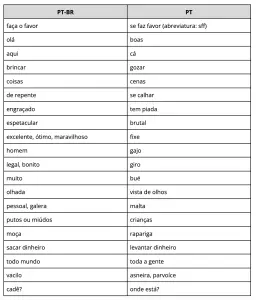 Abaixo coloquei algumas expressões para exemplificar as diferenças entre português brasileiro e de Portugal.