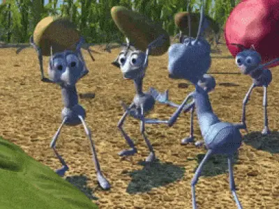 This is a scene in Bug’s Life, a Disney film. The ants were trying to go back to their anthill, but a problem happened: a leaf fell off on their way. The ants started to become desperate and didn’t focus on solving the problem.