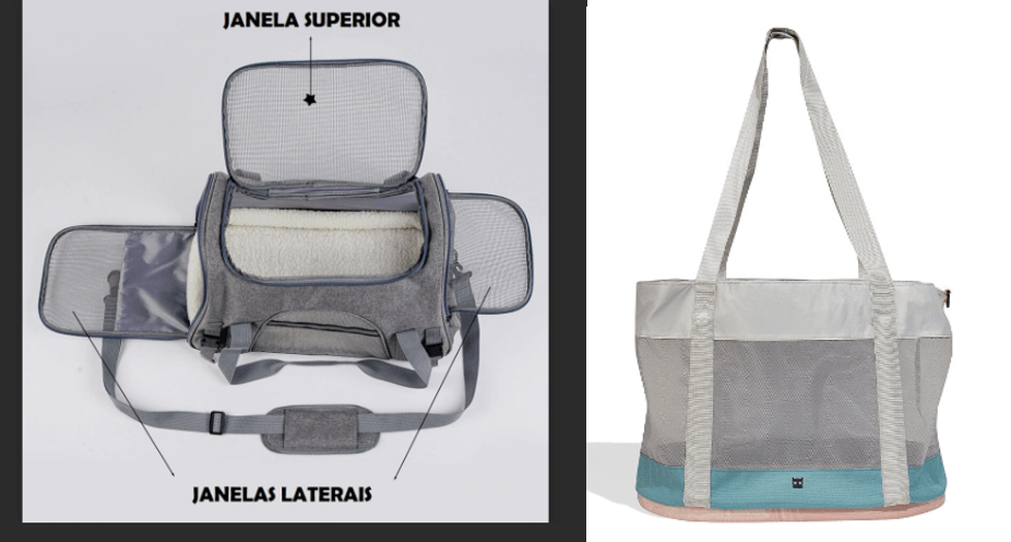 Ao comprar uma bolsa de transporte para dentro da cabine procure uma bolsa de transporte maleável que seja de fácil ajuste na poltrona da frente. Cada companhia aérea tem seu tamanho específico para bolsa de transporte. Eu comprei a segunda bolsa das fotos, para melhor ajuste, e não me preocupar com a altura da poltrona.” – Adriane Souza