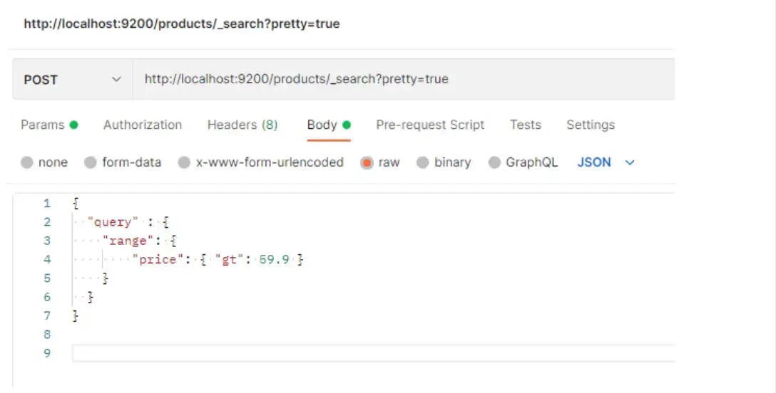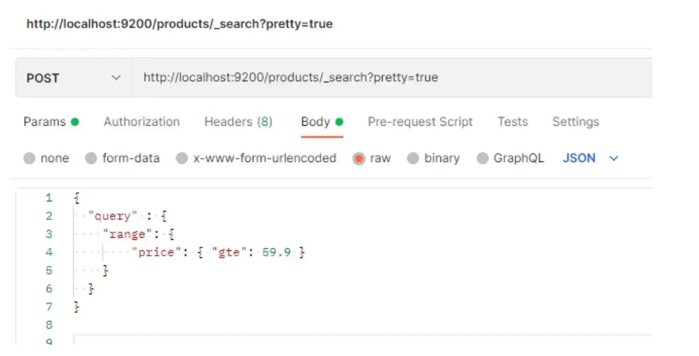 In this case, we’re searching for all the products whose price is greater than or equal to a specific value, and then we can notice that all the returned data respects this condition: