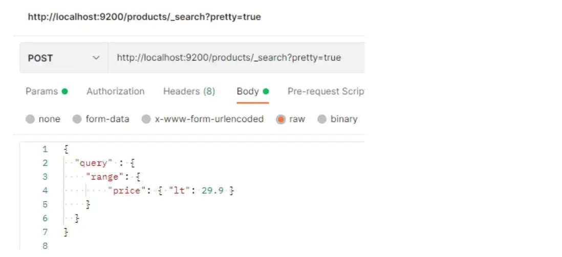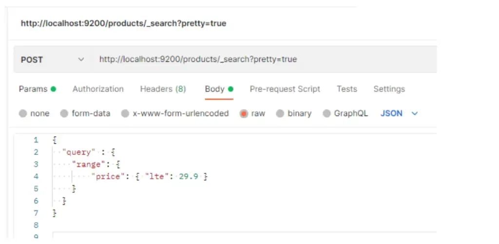 This will return only one record that we have in ES and which price is less than or equal to 29.9: