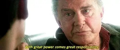 Contudo, parafraseando a frase do Tio Ben: