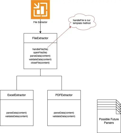 Once I had a ticket where the goal was to refactor our data file extractor service. Visually it would reflect on having to upload a file, such as a PDF or an excel. After the upload, we needed to extract all the file data and display it through a pretty UI. We all knew that another new file type was heading our way in a future sprint, reinforcing the need for such refactoring.