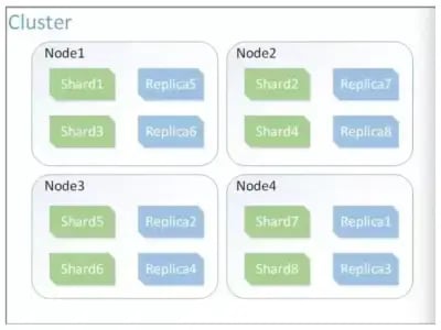 É possível dividir cada índice em pequenas peças chamadas Shards, que são criadas com a informação do índice subtraída e são totalmente funcionais e independentes para serem adicionadas ou não em algum Node. Para aceder a uma Shard específica, pode-se pesquisar pelo seu índice.