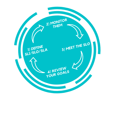 Service Level Objectives (SLOs) are targets or limits that are defined according to the SLIs, mentioned in the previous paragraph, and that represent the desired performance values that a service must maintain. For example, an SLO for the streaming service mentioned above could be: “Content must be available to users 99.9% of the time within a month.” Establishing SLOs allows you to set clear performance and quality expectations for both internal teams and end users.