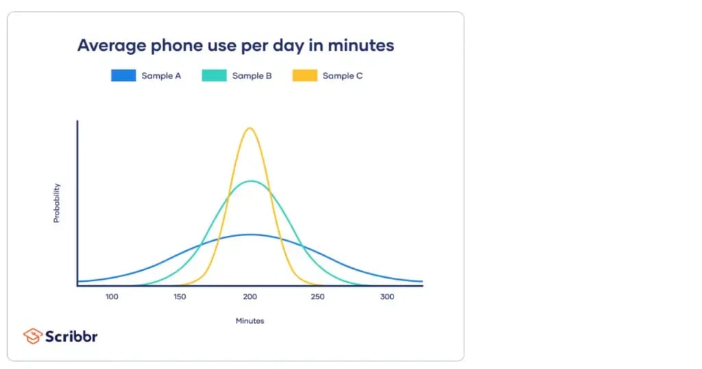 Imagem retirada de: https://www.scribbr.com/wp-content/uploads/2021/12/variability-in-normal-distributions-1.png