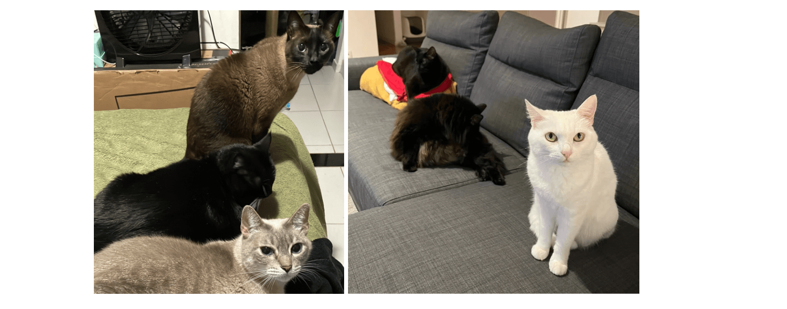 Muito importante, não perder nenhum prazo e sempre prestar a atenção em relação a passagem e conexões, se necessário. Meu gatos são tudo para mim, sempre tive pet e acho que não sei ficar sem eles ao meu lado. Tenho um dos meus gatos que está comigo desde os 35 dias de vida e hoje tem quase 9 anos. Sofri muito, quando trabalhei por 90 dias em outra cidade, sem estar com eles. E hoje, não quero mais passar por isso novamente. Por isso, foi muito importante fazer isso e levar eles comigo.” – Adriane Souza